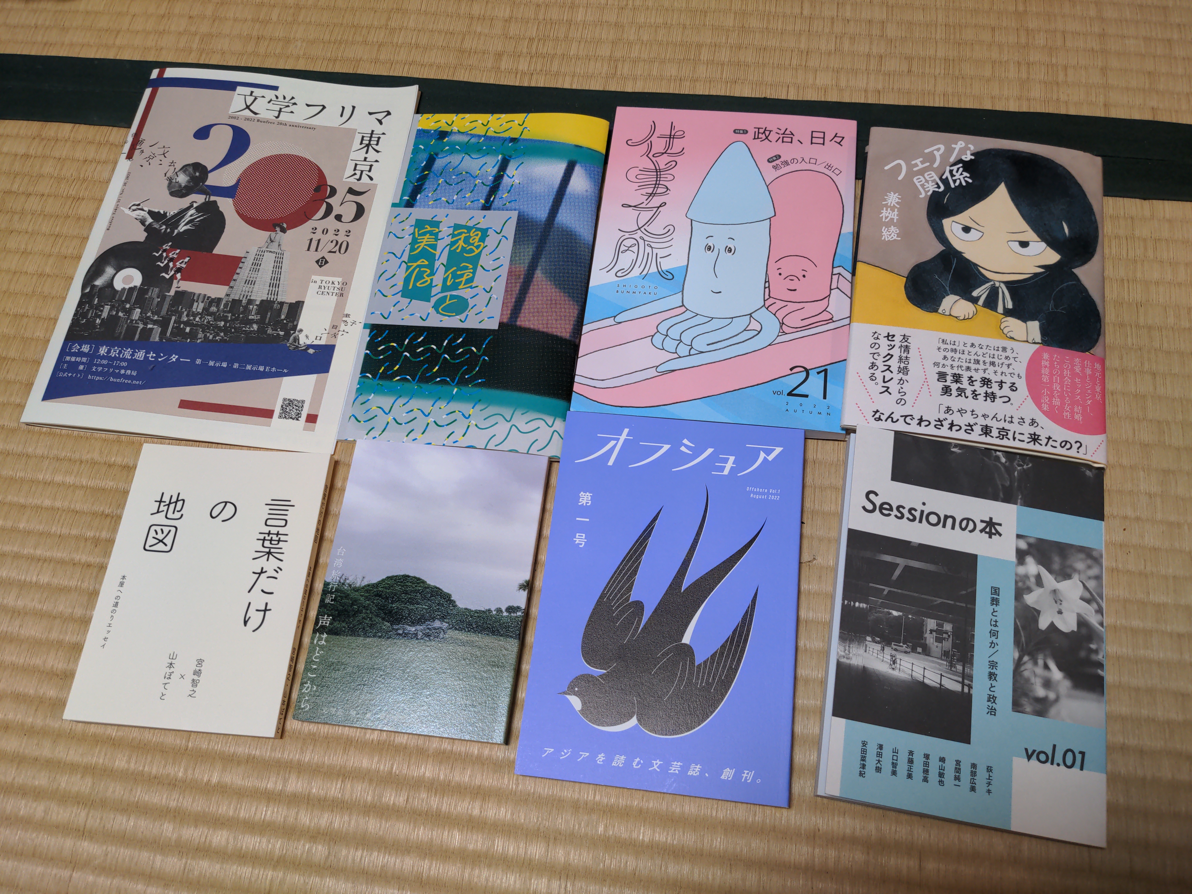 意外だったのは短歌とかのサークルが集まっているブースの列が結構混雑していたことで、ポッドキャストでも言われていたように、こういうイベントでしか表面化しない静かなムーブメントの存在を確かに感じさせる。今回は短歌の本は何も買わなかったけど、次回は事前に少し下調べしてトライしたいかもしれない。