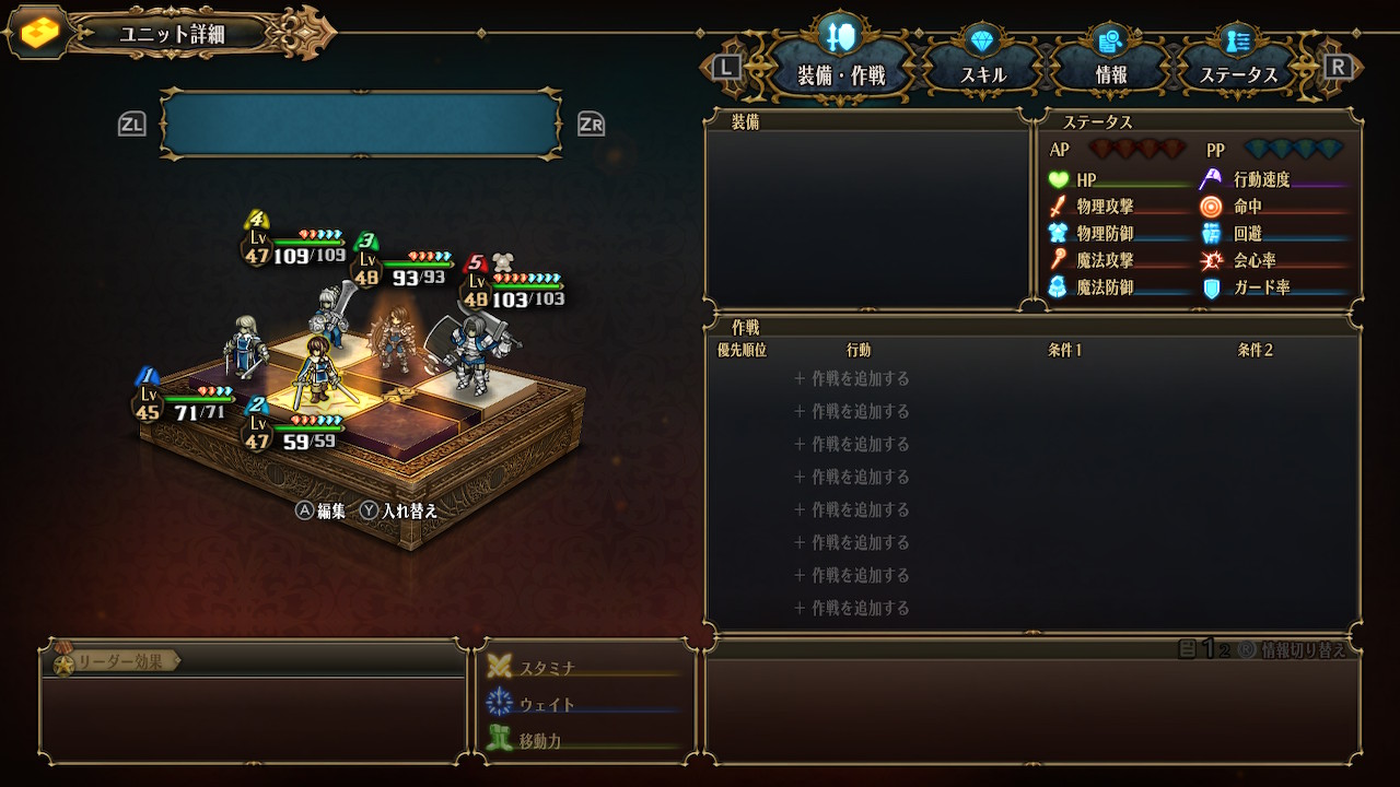 バトルで言えば、こまごま前後や横にキャラの配置や装備をいじるだけで行動速度などのバランスから個々の戦闘の前に勝率がコントロールできるのは面白いんだけど、それによってどんなユニットをどういう相手に適当に当てても大きくは負けないように出来る点だったり、単純に相手とのレベルの差が詰まってしまうだけで、ピンチらしいピンチもなくぬるぬるマップを消化していくようになってしまう、というありがちな問題がこのゲームにもあったというか。マップやギミックのバリエーションがそこまでなかったのも大きな要因なのかも。