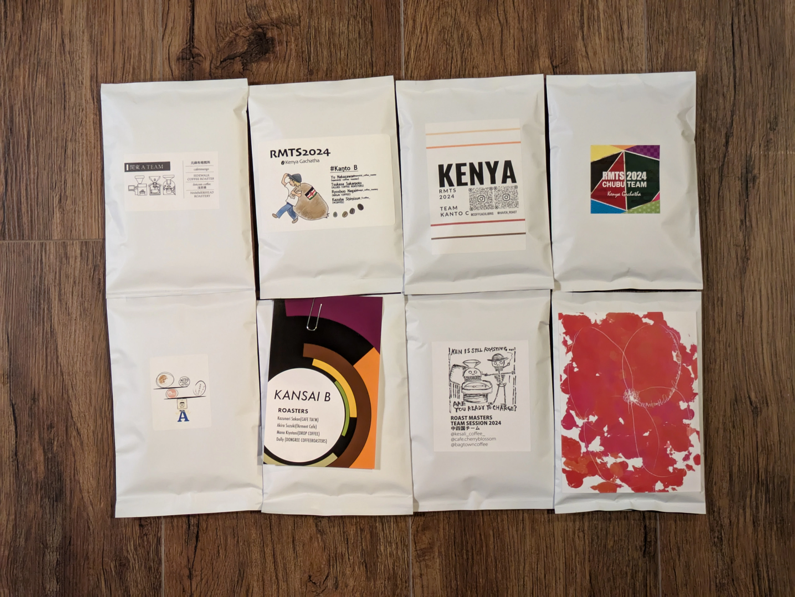 なので器具関連のブースは歩きながら眺める程度にして特に何も買わず、丁度ステージで始まるところだった、焙煎のコンペティションというか品評会的なローストマスターズチームセッション(RMTS)という、日本各地のロースターが関東とか中部とかブロックごとにチームを組んで、提供された豆をテーマに沿って各々考えて焙煎し、プレゼンテーションも聞きつつ飲み比べてみましょう的な催しを観覧することに。