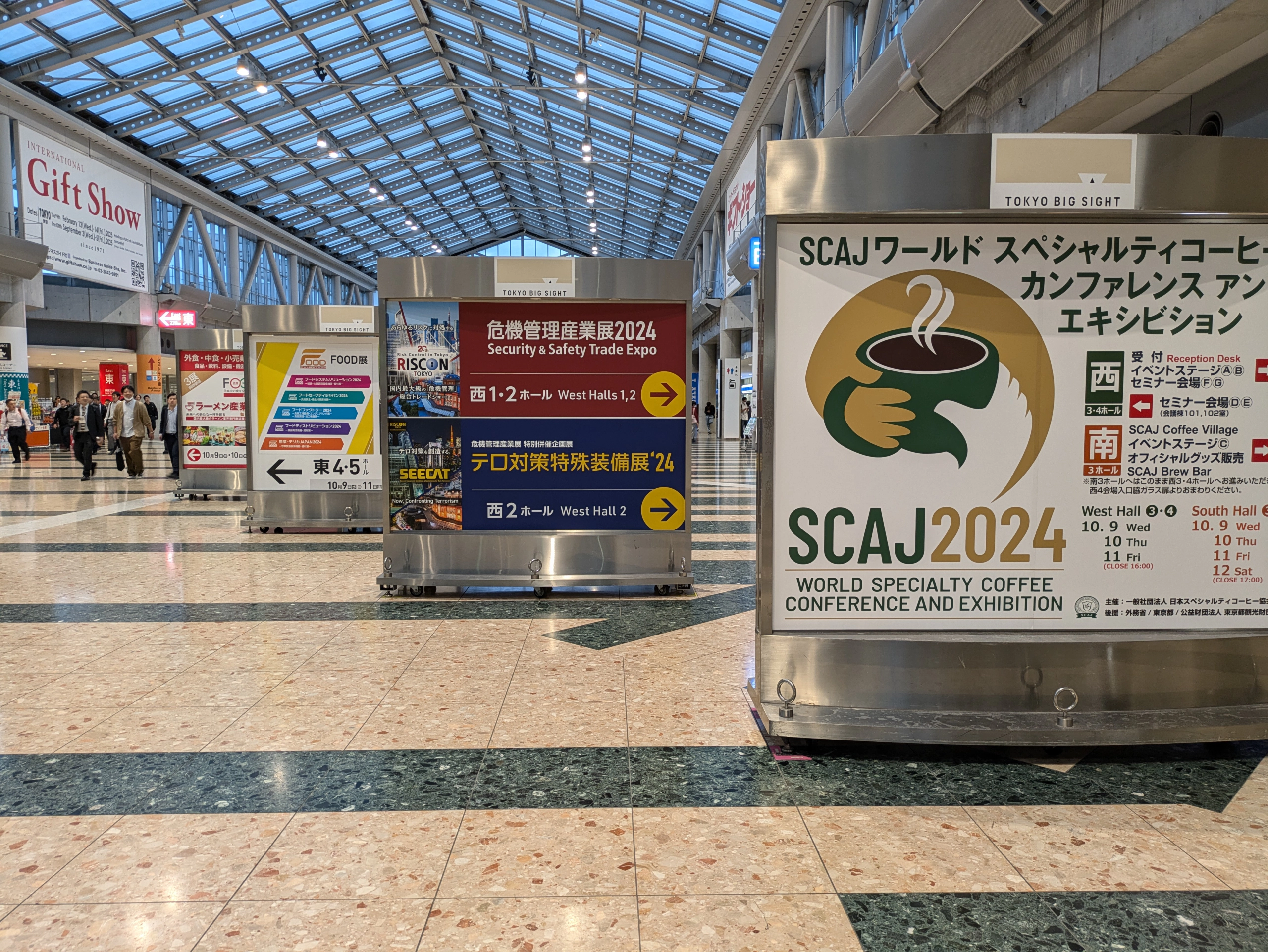 コーヒー業界もきっといろんな搾取の下に成り立っているのだし、「世界が悲惨な時に呑気に資本主義に従順な消費者として開き直ってんじゃねえよ」的な訴えなんだろうか…つってもちょっと無理筋なような…などと考えながら移動していくと、開催中のイベントに「危機管理産業展」とか「テロ対策特殊装備展」みたいな催しの案内が並んでいたので合点がいった。きっとイスラエル企業の何かもあるんだろう。